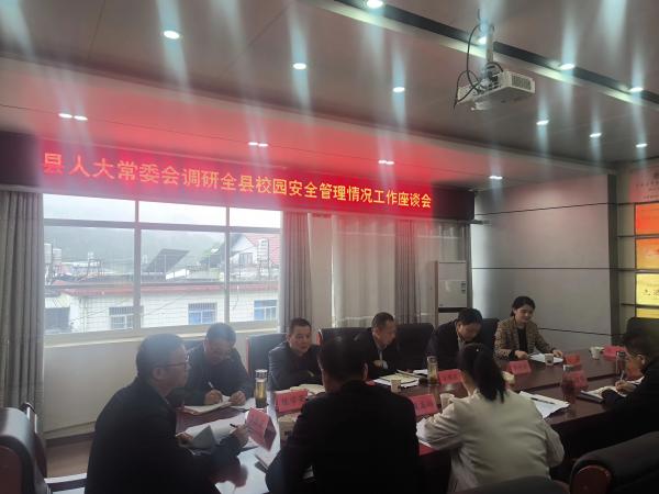 调研组一行深入刘畈初中,通过实地走访、座谈交流等方式,详细了解学校校园安防设施配备、食堂食品安全管理、学生心理健康教育等实际情况。座谈会上,调研组听取了刘畈乡校园安全管理情况汇报,并就当前存在的困难与问题展开研讨,广泛听取镇村干部、人大代表以及教育一线工作者的意见和建议。